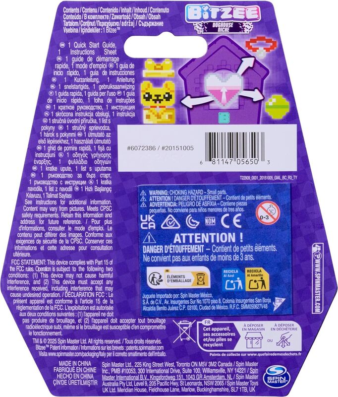 Pejsci spolu interagují - zahrajte si tři společné hry nebo klikněte na obrazovku a připojte se ke kamarádovi přímo na jeho displeji. Součástí balení Bitzee bouda pro pejsky jsou tři baterie AAA.
