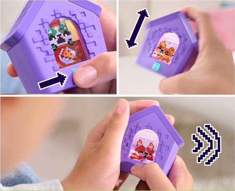 Objevte nové možnosti hraní s Bitzee boudou pro pejsky. Virtuální Bitzee štěňátka reagují na dotyky i pohyby roztomilými zvuky a animacemi a čím více péče jim děti věnují, tím více překvapení odhalí. Vstupte do 3D herny, kde můžete virtuálním mazlíčkům projevovat lásku, dopřát jim koupel, zatřepáním je zbavit blech, sledovat, jak jedí z 3D misky, nebo jak se uloží ke spánku na 3D postýlce.