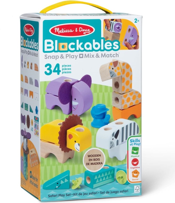 Ilustrovaný návod ukazuje, jak z Blockables™ sestavit safari zvířátka s různými texturami – zebru, aligátora, lva s plstěnou hřívou, slona s plstěnými ušima a žirafu. Děti ale mohou jednotlivé díly i volně kombinovat a vytvářet vlastní postavičky podle fantazie.