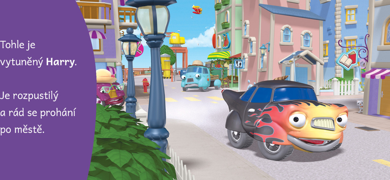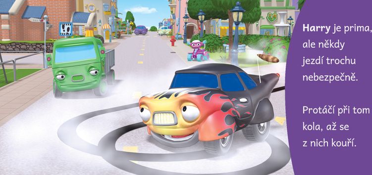 Autíčko Harry je známý výtržník. Rádo jezdí rychle, zkouší nebezpečné smyky a používá silné výrazy. Je impulzivní a často trestá sám sebe svou nerozvážností a bezhlavým chováním. Hluboko uvnitř je laskavé a přátelské, ale chce vypadat jako drsný rebel. Důvodem, proč se tak předvádí, je, že se neustále snaží okouzlit motorku Terku…