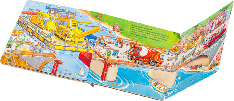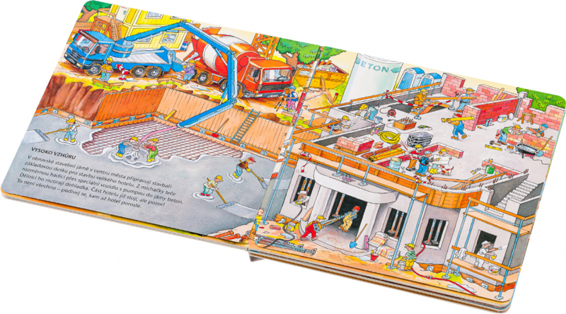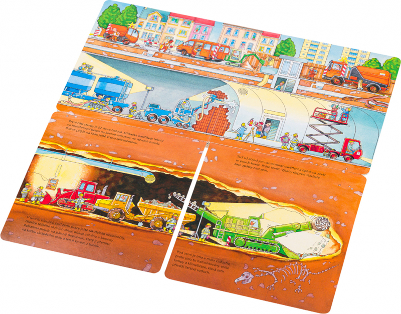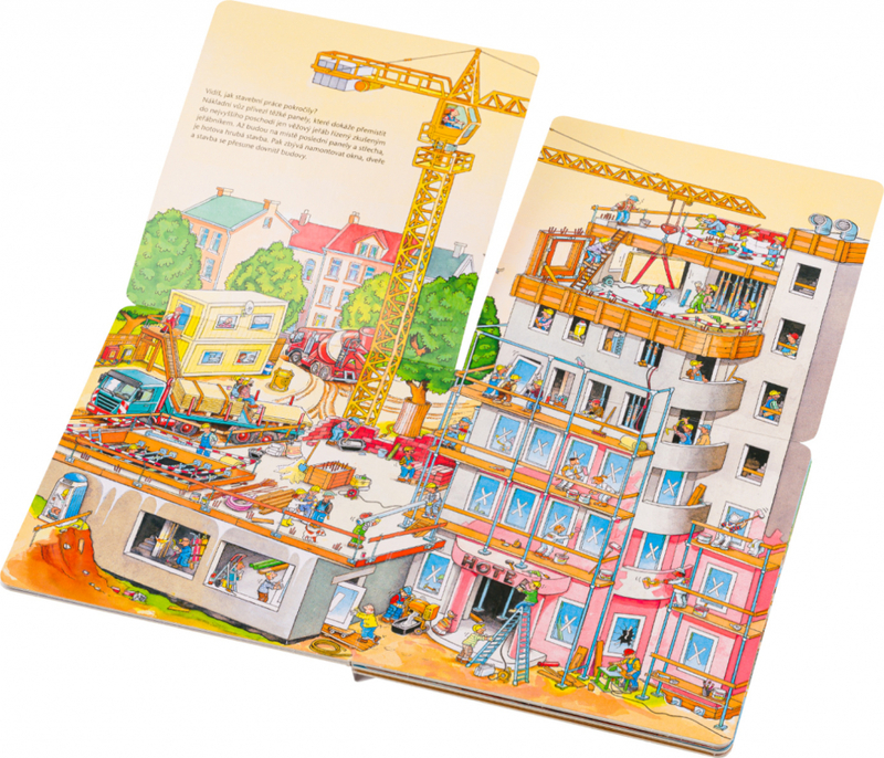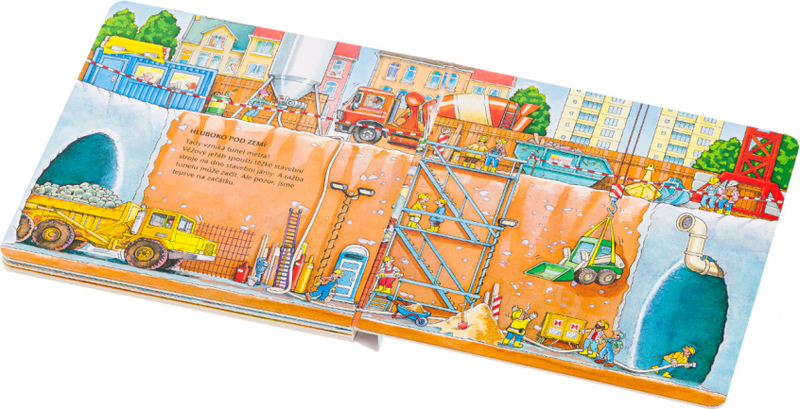 V této knize navštívíte stavbu výškové budovy nového hotelu, zúčastníte se na stavbě mostu přes řeku a podíváte se hluboko pod zem, jak vzniká tunel metra. Tak hurá na stavbu!