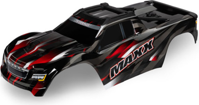 Traxxas karosérie červená Maxx s rozvor 352mm. Hotová, nabarvená karoserie, včetně vnitřního rámu a plastových dílů, aplikované polepy.