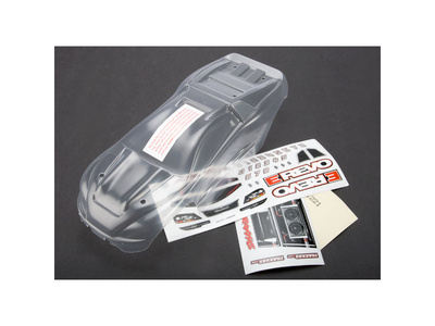 Traxxas karosérie čirá, samolepky: E-Revo 1:16