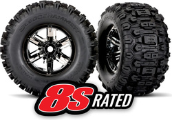 Pneumatiky poskytují extrémní trakci a kontrolu nad modelem v různých off-roadových terénech. Větší průměr pneumatik zároveň poskytuje vyšší světlou výšku pro lepší průchodnost terénem. Dezén běhounu Sledgehammer s otevřeným blokem poskytuje výbornou trakci a zároveň odvádí bláto z pneumatik. Nalepené pneumatiky s pěnovou vložkou na discích. Unašeč 24 mm.