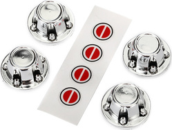 Náhradní díl pro RC model auta Traxxas TRX-4 Ford Bronco, Traxxas centrální zátky, kola (chrom) (4) / obtisky.