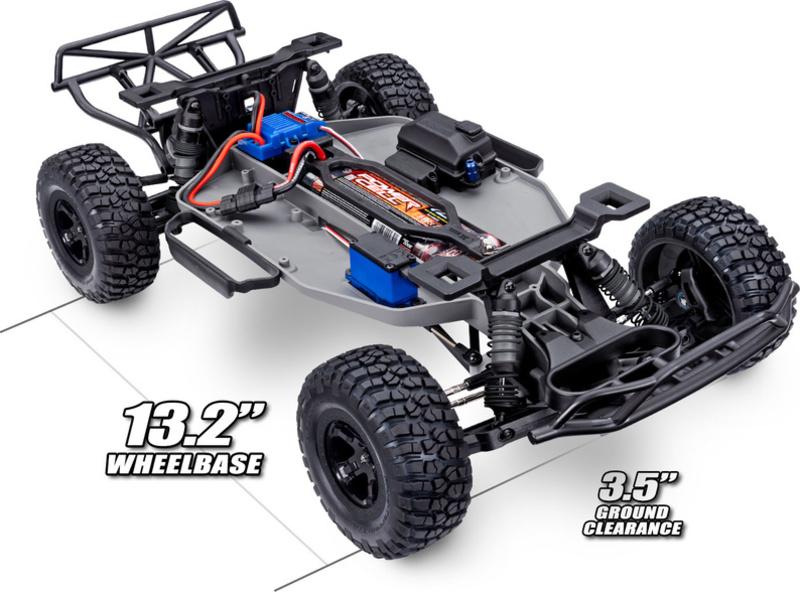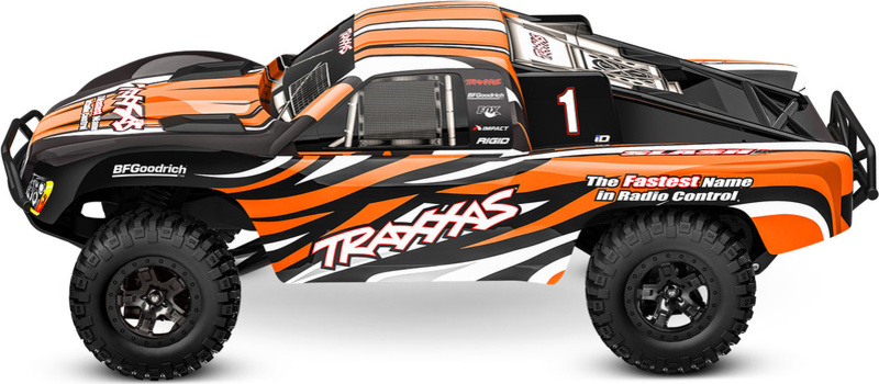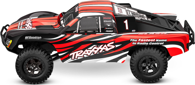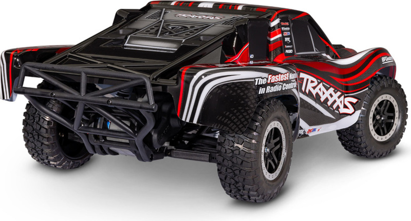 Traxxas Slash je RC model auta 1:10 s náhonem 2WD, který jezdí rychlostí až 48 km/h. Je plně sestaven a připraven k jízdě ihned po vybalení z krabice. Pohání jej výkonný stejnosměrný motor Titan 550 12T s regulátorem XL-5. Jednoduchá RC souprava Traxxas TQ 2.4 GHz poskytuje precizní mechaniku pro přesné řízení. Obsažen je NiMH akumulátor a moderní USB-C nabíječ pro bezpečný a bezstarostný provoz. Nově je na modelu použitý bezsponkový systém uchycení karoserie pro snadnou výměnu baterie a továrně jsou instalovány prvky zavěšení Extreme Heavy Duty pro vysokou odolnost.