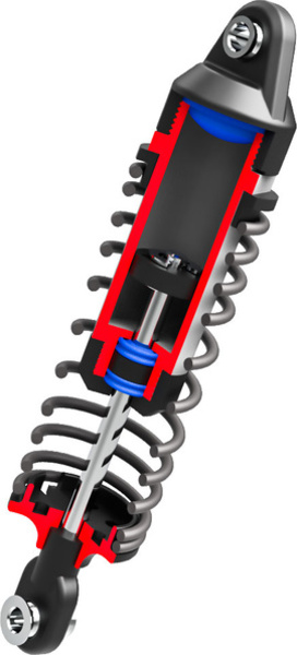 Olejové tlumiče s vysokým zdvihem využívají duální X-kroužky pro dokonalé utěsnění a perfektní chod. Robustní design v kombinaci s vysokým objemem oleje dokáže absorbovat i tvrdé nárazy v těžkém terénu. Tlumiče si můžete naladit podle svých představ úpravou pružin a změnou viskozity oleje.