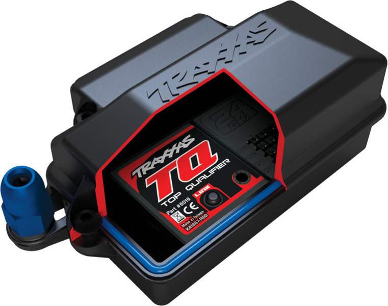 Tří-kanálový přijímač Traxxas TQ 2.4 GHz, zajišťuje bezpečné řízení bez výpadků. Snadné spárování jedním tlačítkem. Indikace stavu pomocí LED diody.