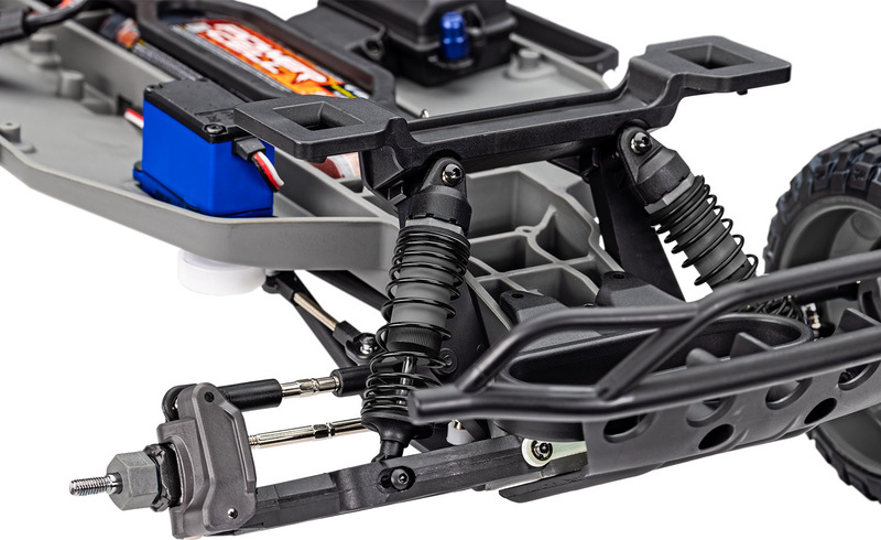 Továrně instalované komponenty sady zavěšení a prvků pohonu pro vysokou odolnost - Extreme Heavy Duty, jsou vyrobeny z těch nejodolnějších materiálů, které společnost Traxxas používá. Přední a zadní těhlice s prvky řízení jsou zesíleny a mají pevnější konstrukci.