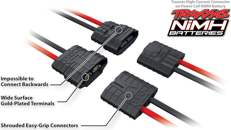 Univerzálními nabíječi Traxxas lze nabíjet akumulátory Traxxas typu LiPo a NiMH. (Nabíječ obsažený v balení je určen jen pro akumulátor typu NiMH, který je součástí balení.) Nabíječe Traxxas představují jednoduchý a bezpečný způsob nabíjení akumulátorů. Společnost Traxxas využívá jedinečný systém iD, díky tomu máte vždy jistotu, že vše jednoduše a bezpečně zapojíte. V konektoru akumulátoru je integrovaný čip, který nabíječ Traxxas automaticky rozpozná a nastaví za Vás všechny parametry nabíjení akumulátoru. Více informací zde.