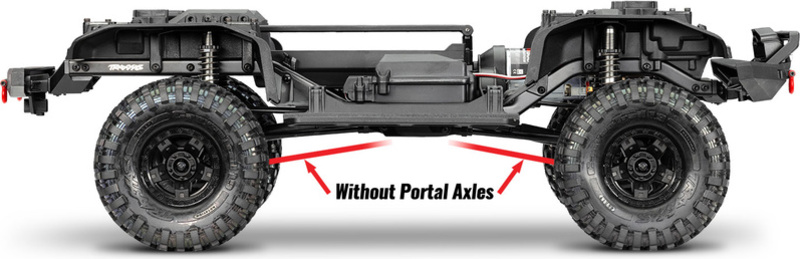 Šasi TRX-4 používá portálové nápravy s nápravovou převodovkou. Nápravová převodovka zvyšuje světlou výšku, snižuje namáhání převodovky, kardanových hřídelí a dále se snižuje torzní síla - model se méně naklápí.