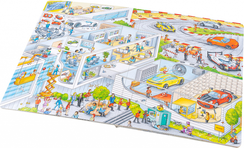 Vďaka tejto veľkej obrázkovej knihe môžeš pozorovať zamestnancov továrne priamo pri plnení úloh súvisiacich s vývojom a výrobou týchto úžasných áut. Zúčastníš sa aj na testovaní nového prototypu na skúšobnej trati v Lipsku alebo na populárnych vytrvalostných pretekoch 24 hodín Le Mans a v múzeu Porsche budeš tiež obdivovať krásne historické vozy. Kniha približuje nielen čulý ruch vo výrobných závodoch, na okruhoch alebo v továrenskom múzeu značky Porsche, ale oboznamuje aj s množstvom modelov týchto obdivovaných vozidiel a určite preto poteší automobilových nadšencov všetkých vekových kategórií!Rok vydania: 2019