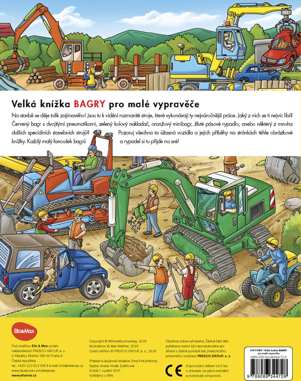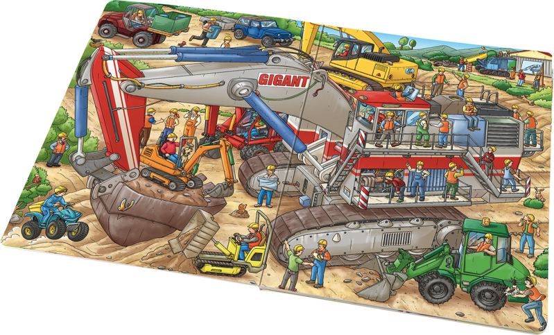 Toto velkoformátové obrázkové leporelo ocení především fanoušci náklaďáků, bagrů, rypadel a dalších strojů, které pomáhají všude tam, kde vzniká něco nového.