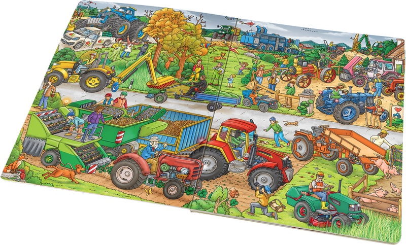 Sledujte příběhy, které se rozvíjejí na stránkách tohoto úžasného velkoformátového leporela, a zažívejte dobrodružství s hrdiny a jejich stroji, které můžete na každé dvojstraně hledat znovu a znovu.