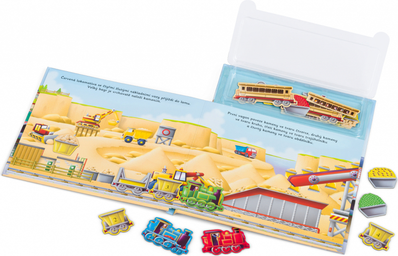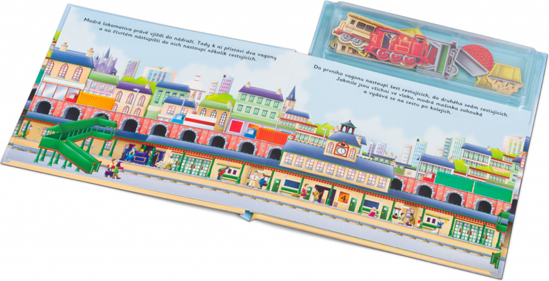 Húúú, húúú - pozor, přichází vlak! V přístavu, na železniční stanici, na stavbě a po náročném dni také ve depu - tam všude najdeme lokomotivy a vagóny na osobní nebo nákladní přepravu. Tam všude nám vláčky pomáhají. Na každé stránce této knihy objeví děti krátký příběh, který mohou spoluvytvářet pomocí magnetek. A když se do sytosti vyhraje, mohou všechny vozy znovu "zaparkovat" zpět do úložného boxu, kde budou připravené na další skvělou zábavu.Kniha obsahuje 21 ks magnetek.